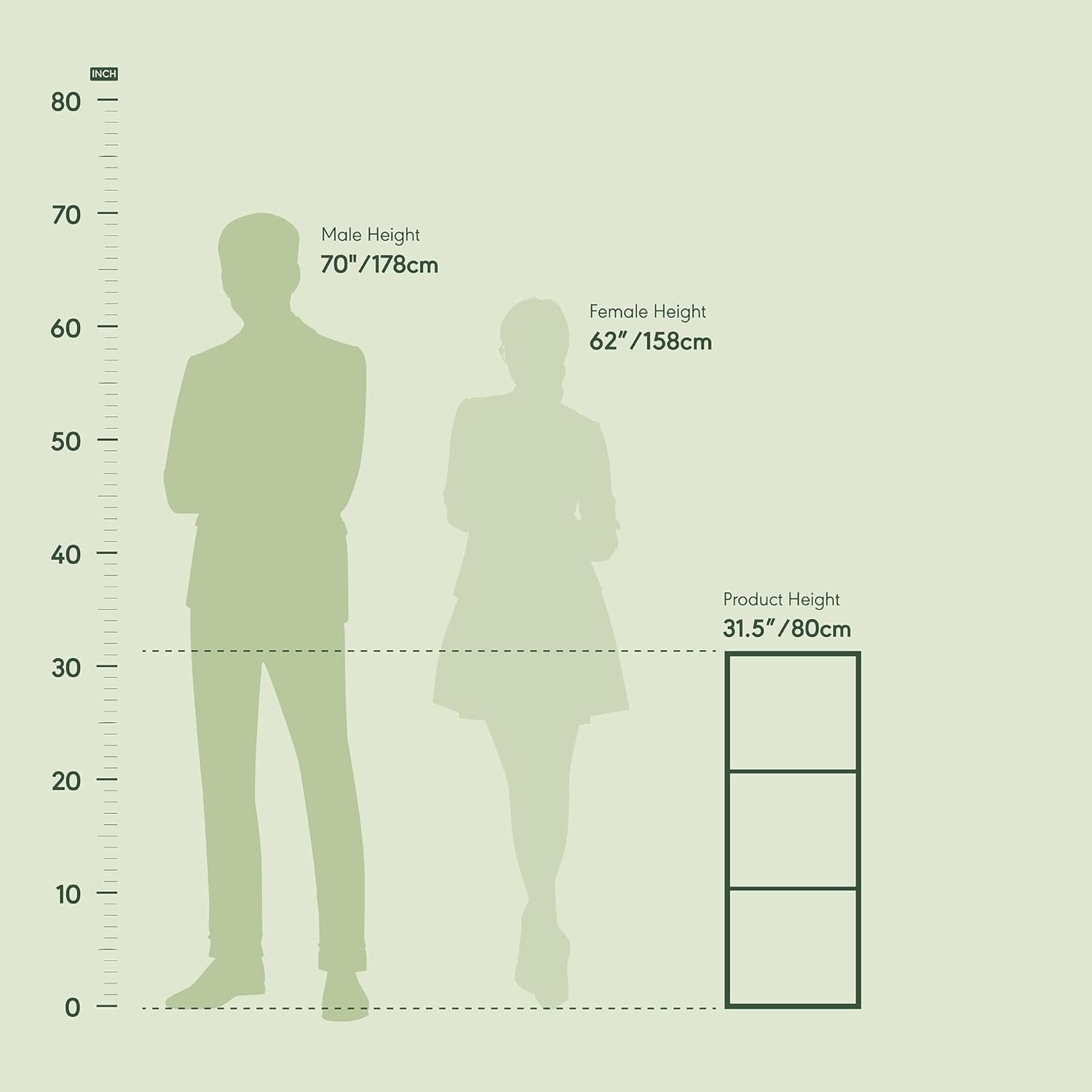 Measuring 9.3″ deep, 12″ wide, and 31.5″ high, it’s sized perfectly for apartments, dorms, and compact rooms. The three open shelves provide vertical storage for books, photo frames, and decor, all while keeping your space organized.