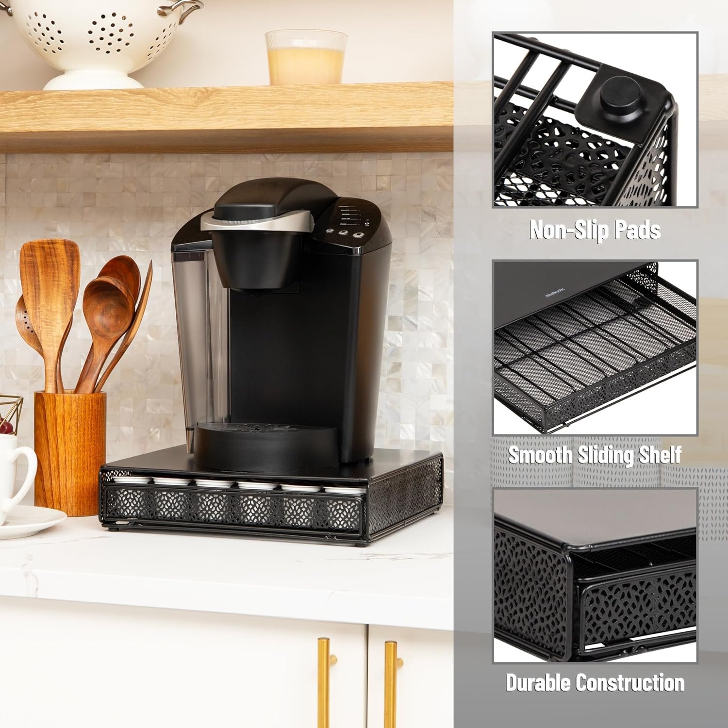 In summary, the coffee drawer is one of the most reliable countertop storage options for anyone seeking a spacious, sturdy, and streamlined way to organize their single serve pods—making it a top pick for coffee lovers everywhere. Order now to elevate your coffee station game!