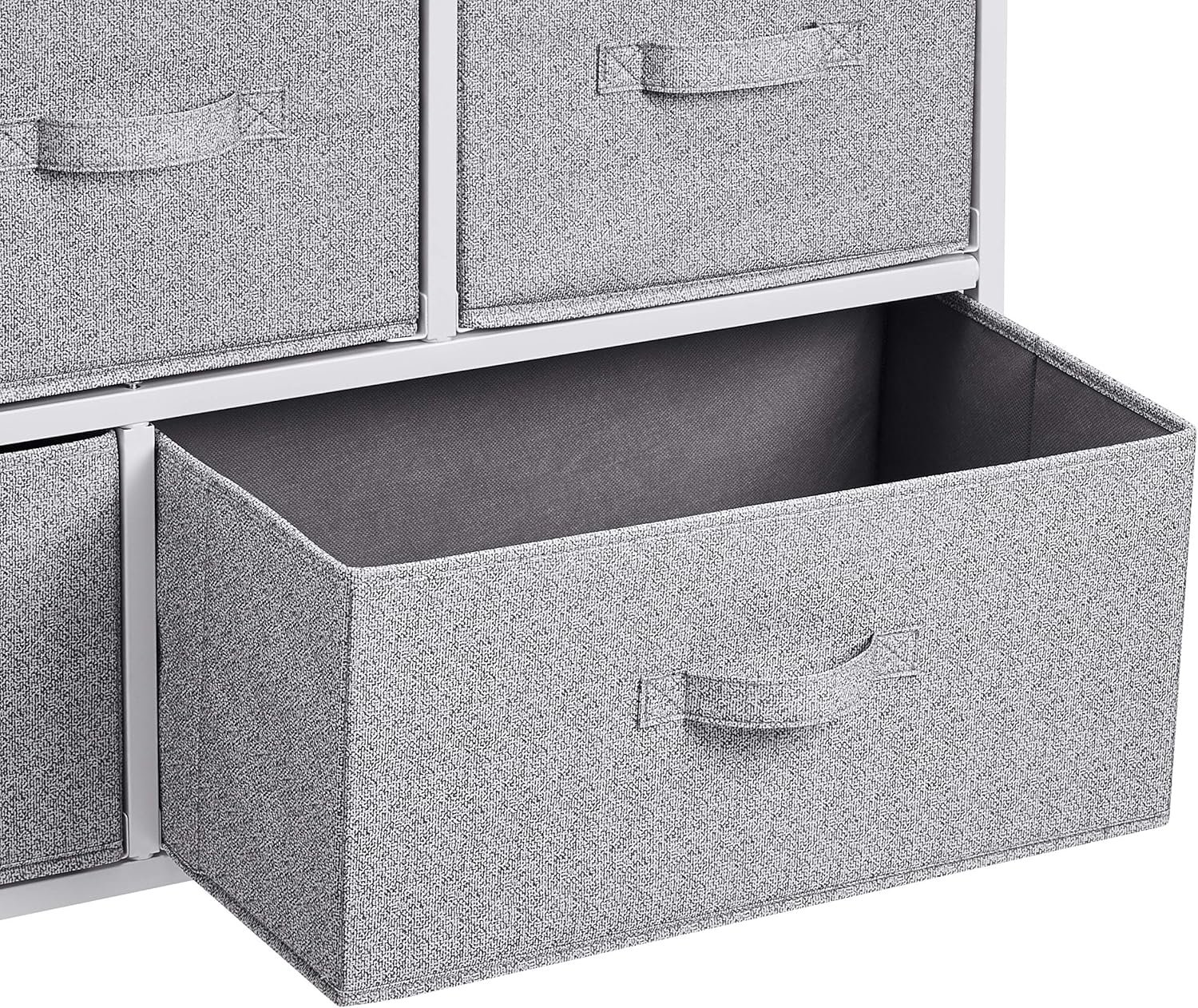 During real-world use, the fabric drawers perform well, offering ample storage for clothes, linens, toys, and more. Its extra wide design helps users optimize every inch in small rooms and narrow closets. In the bedroom, the removable drawers slide smoothly, even when fully loaded with heavier items.