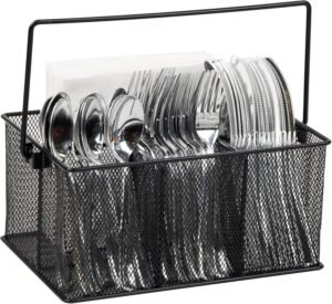 This small nightstand measures about 16″ wide and 12″ deep, working well as an end table organizer for apartments or a closet dresser for maximizing space.