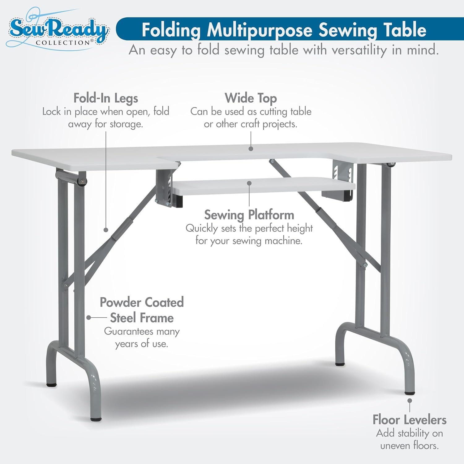 The Sew Ready Folding Multipurpose Sewing Table combines style and functionality, offering a spacious 47.5-inch wide workspace perfect for sewing, crafting, or using as a computer desk. Its innovative foldable design with locking legs ensures easy storage and portability, while the adjustable shelf accommodates various sewing machines or laptops. With its durable powder-coated steel frame and stable levelers, this Sew Ready table is built for years of creative use in any room. Upgrade your workspace with this versatile and space-saving essential from Sew Ready.